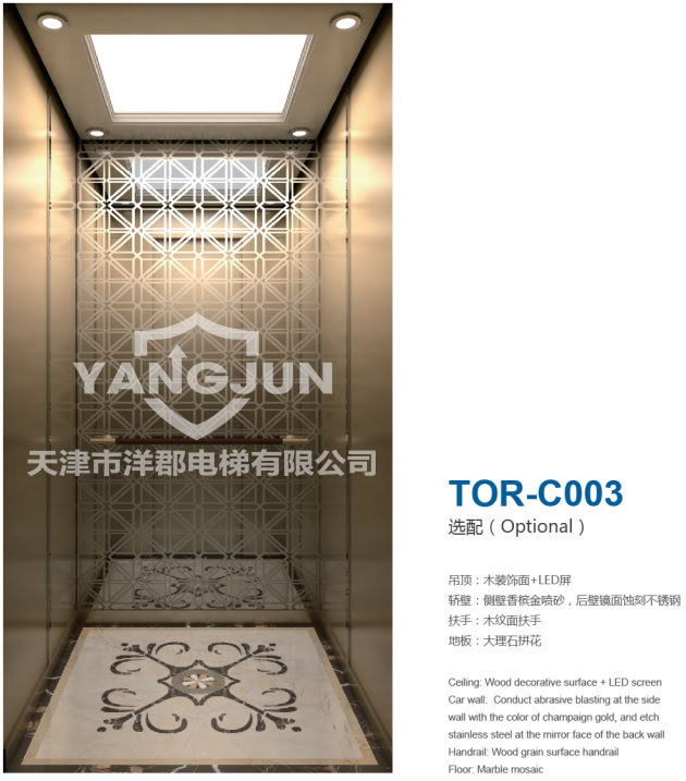 ?? 天津市洋郡電梯有限公司.是一家電梯設計、銷售、安裝、維保服務為一體。主營各種電梯產品,包括別墅電梯、觀光電梯、乘客電梯、住宅 安裝便捷 無需獨立機房,自帶一體化井道。安裝非常簡便,只需一周左右即可完成,而且可以直接安裝在已經完成裝修的地板上而不破壞現有裝修。
