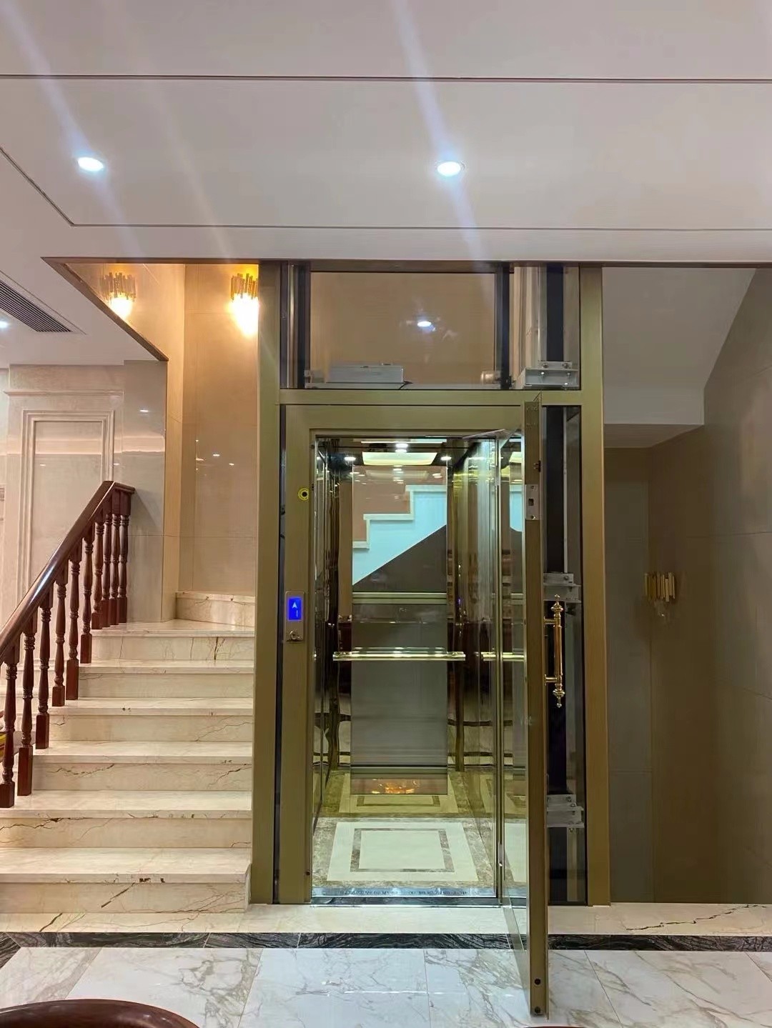 ? 天津市洋郡電梯有限公司.是一家電梯設計、銷售、安裝、維保服務為一體。主營各種電梯產品,包括別墅電梯、觀光電梯、乘客電梯、住宅 安裝便捷 無需獨立機房,自帶一體化井道。安裝非常簡便,只需一周左右即可完成,而且可以直接安裝在已經完成裝修的地板上而不破壞現有裝修。